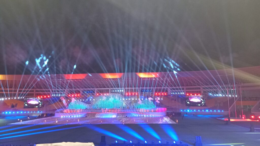 Beberapa aksi panggung didominasi para disibilitas nyaris tidak ada bedanya aksi pada pentas umum lainnya. Hadir juga perwakil asosiasi olaharaga disabilitas asia. Berikut penutupan ditandai api obor peparnas padam dan kembang api. (Agung Santoso)