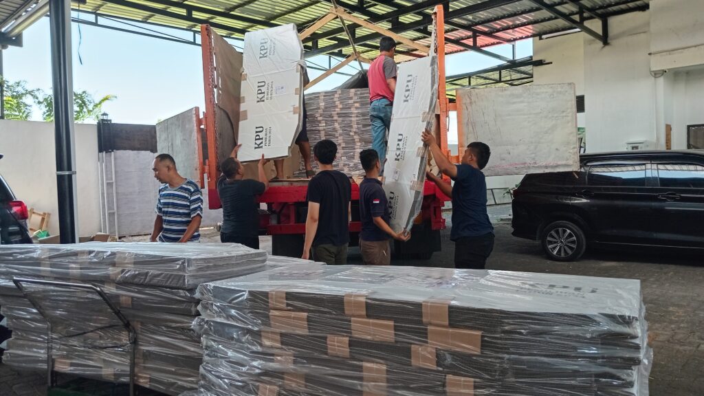” Hari ini yang masuk kotak suara dan bilik, ” terangnya kepada awak media disela-sela proses penurunan logistik.